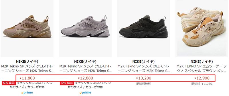 こちらはAmazonでの検索結果ですが、およそ12,000円~とダッドスニーカーの中でも特に低い価格帯のモデルです。